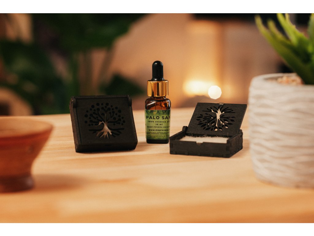 Krabičku doplňuje polštářek z čisté ovčí vlny jako nosič pro esenciální olej.