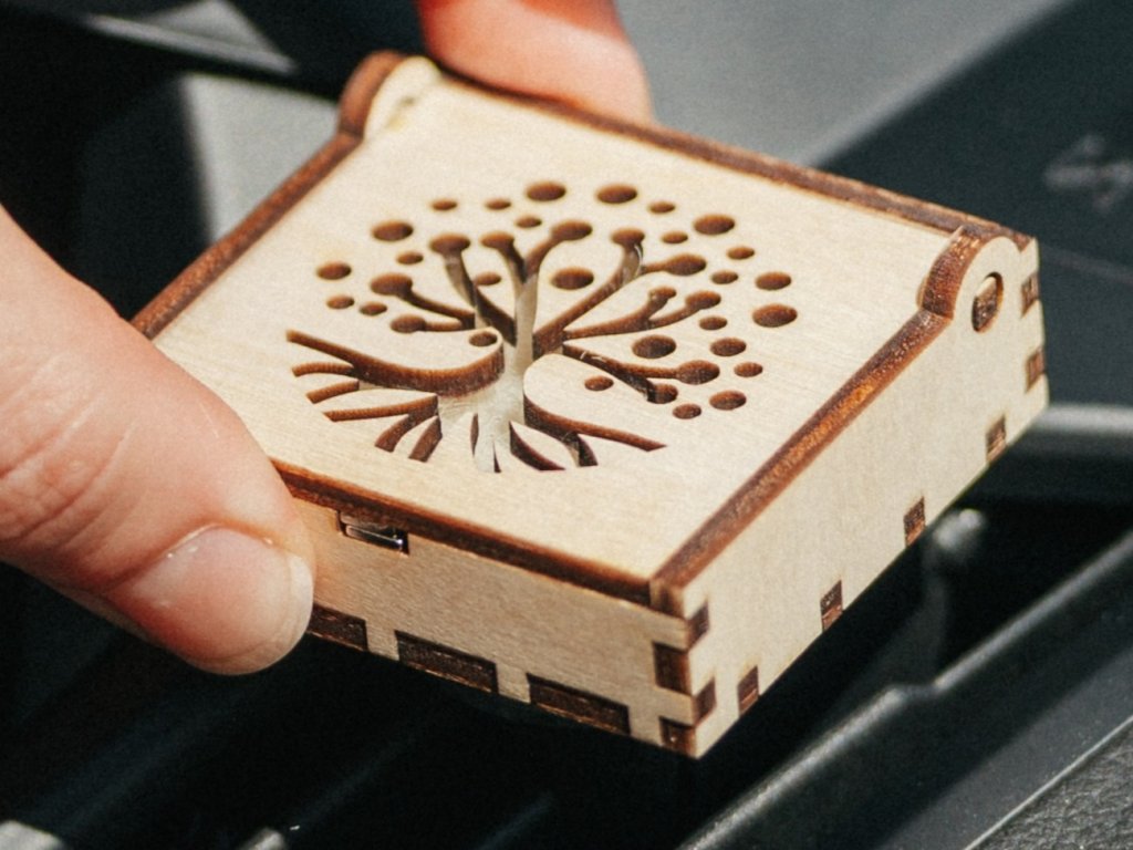 Dřevěná zavírací krabička s designem Stromu života na přední straně