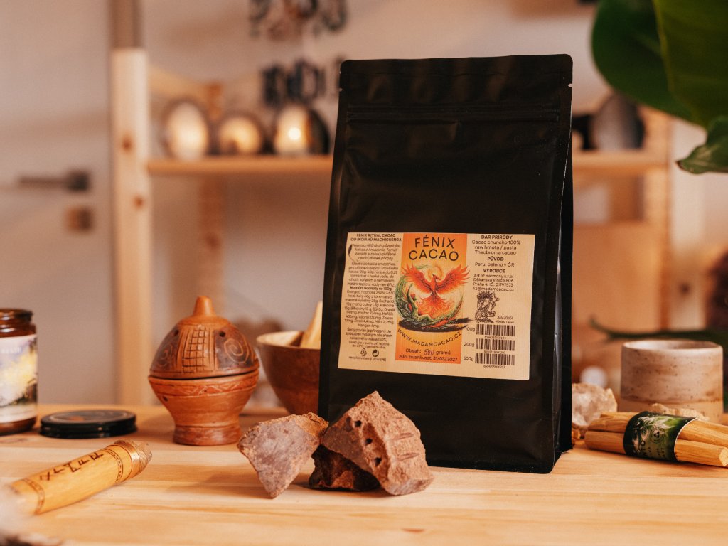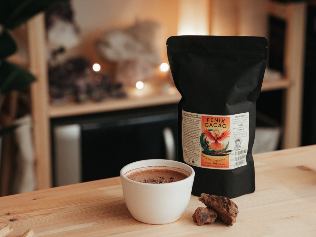 Při přípravě rituálního kakaa doporučujeme 20g – 40g Fénixe rozmíchat v 200ml horké vody, dochutit kořením a popřípadě rostlinným mlékem.