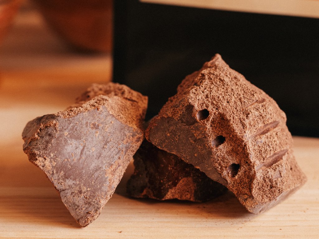 Forma: Lámané kusy. Theobroma cacao - raw kakao bez temperace. Ceremoniální kvalita.