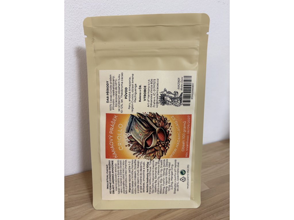 | Složení: | 100% Cacao Criollo prášek, přírodní - nealkalizovaný |