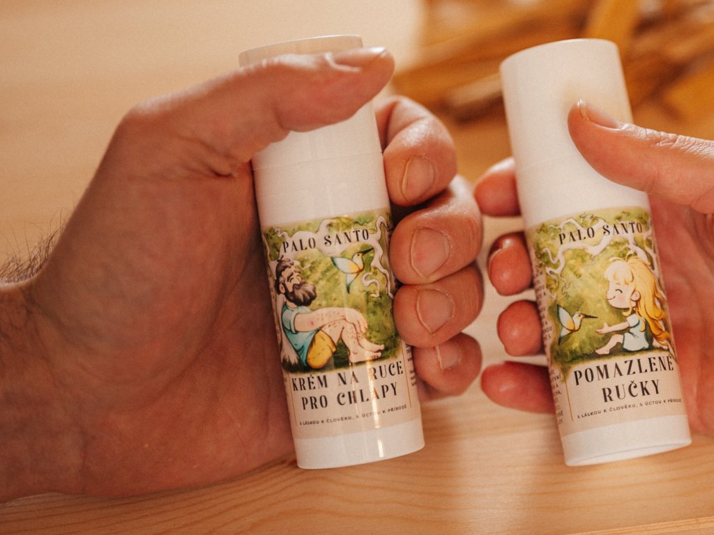 Krém na ruce pro chlapy má intenzivnější vůni a obsahuje o něco více oleje Palo Santo než Pomazlené ručky. Pokud tedy zbožňujete vůni Palo Santa stejně tak jako my, můžete vyzkoušet tuto silnější verzi.