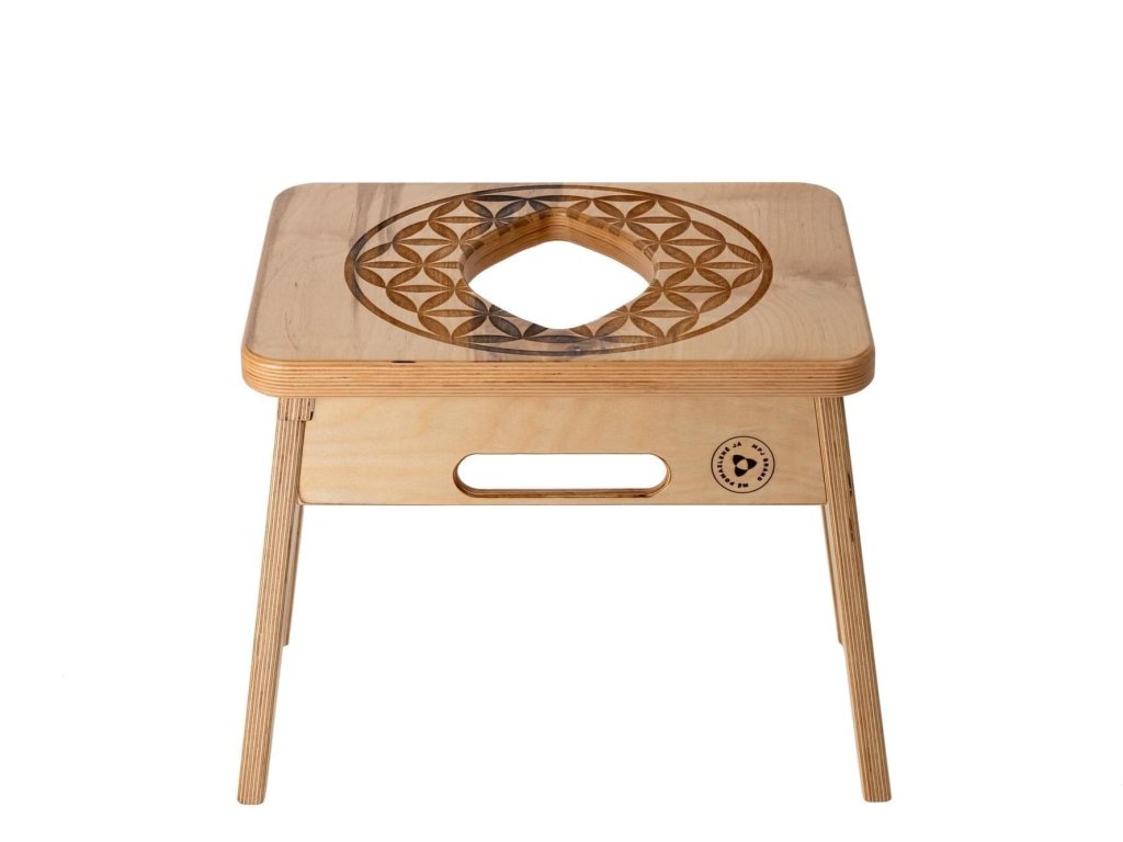 Je konstruovaná tak, aby udržela co nejvíce bylinné páry a ve spolupráci s vytvarovaným otvorem Vás podpořila v příležitosti si naplno vychutnat a využít záměr Vaší ceremonie. Každá stolička je svým způsobem originál, je vyrobena z vrstveného březového dřeva a proto má každá trochu jinou kresbu a zabarvení. Nabízíme ji v několika variantách. Přírodní - bez gravírování, nebo s různými typy gravírování a výřezů.