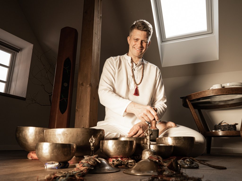 Zvukovou lázní vás provede Jan Flégl, který se zvuku tibetských mís věnuje více jak deset let. Pokud byste měli zájem o individuální terapii, která jde více do hloubky, můžete se u něj objednat zde - Zvuková lázeň - harmonizace tibetskými mísami